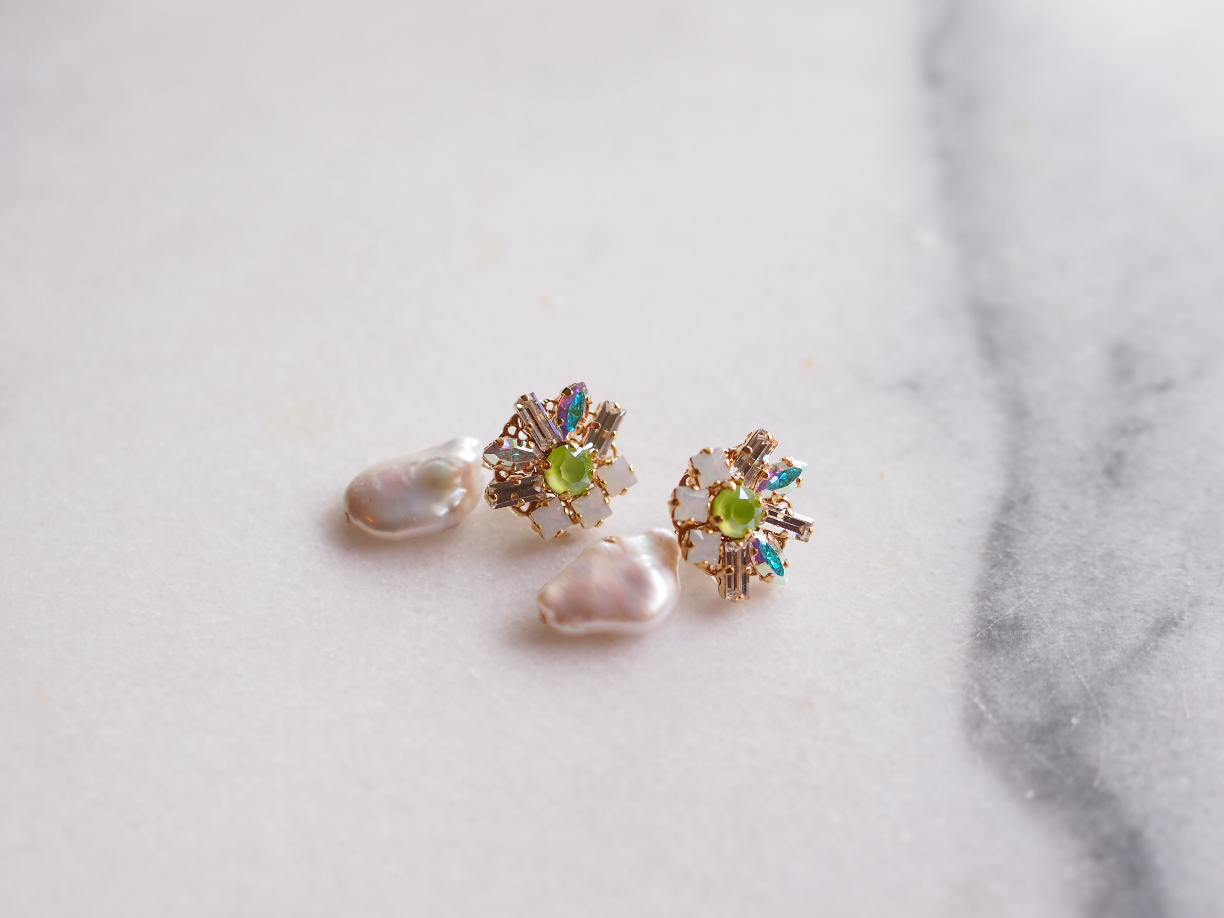 ・一つ一つハンドメイドでお作りしている為、強く押したり落としたりしますと緩んだり外れてしまう原因となりますので装着時や保管にご注意下さい。