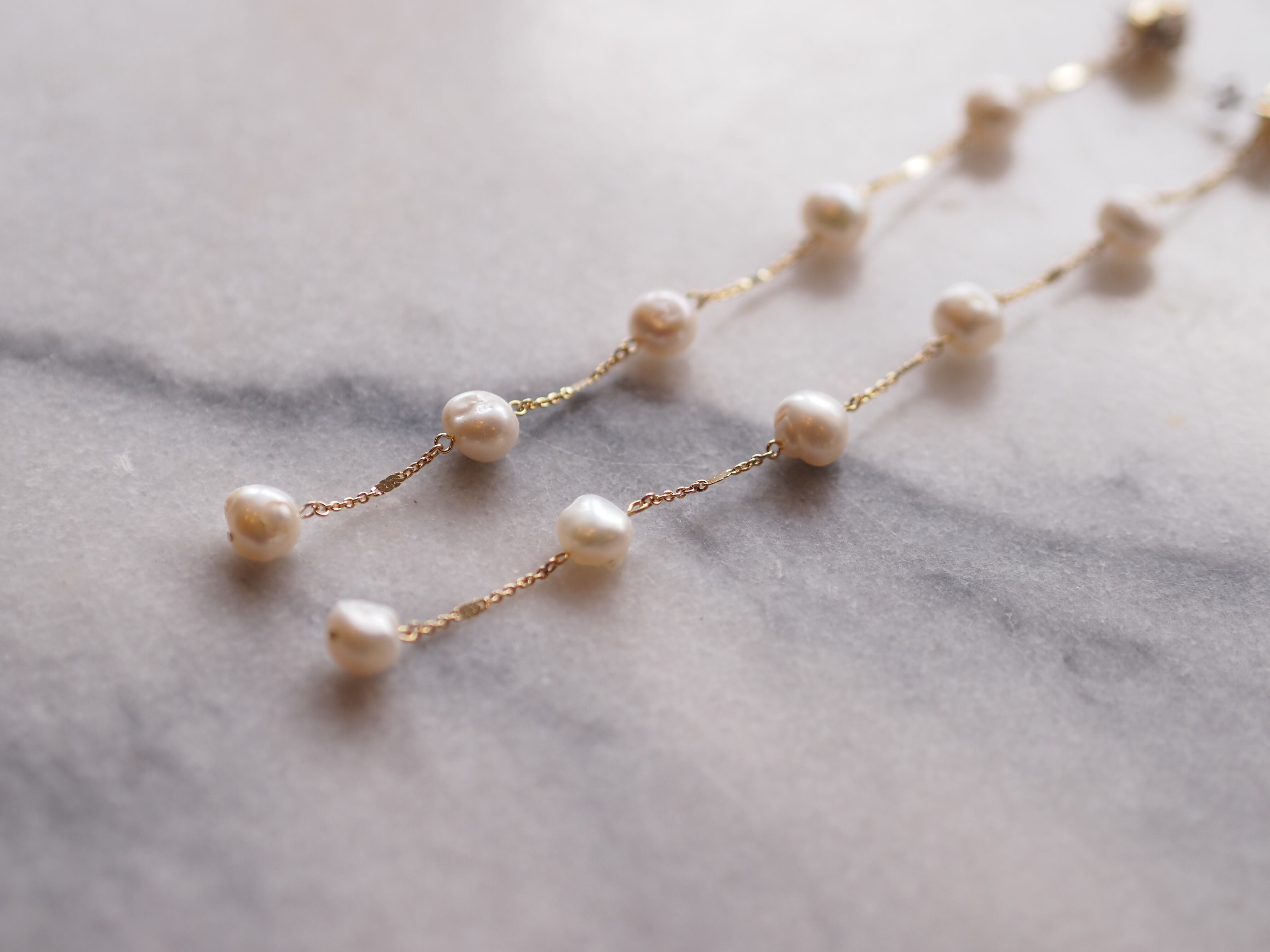ホワイトの淡水パールが連なった